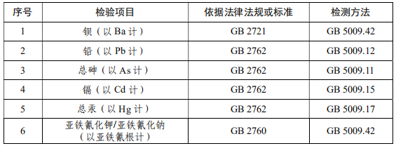 特殊工藝食用鹽檢驗項目
