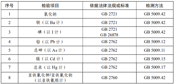 食用鹽抽檢項目: